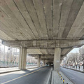 图中的高架下面左右两边的社会车辆通道,中间的是公交车专用道,乘客在高架桥下面候车不会遭受风吹雨打日晒。杭州好像中间下面都是绿化带,道路的利用率不够,