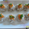 糯米提前2个小时泡,肉馅加鸡蛋,榨菜,香菇,胡萝卜搅打上劲,调好味道,虎口一挤,正好一个小丸子,滚上糯米就成珍珠丸子了,上屉蒸到糯米透明发亮就可。