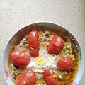 西红柿鸡蛋拌饭+腌萝卜+咖啡=奇葩午餐
