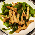 加到肉末里,1/2茶匙烹饪酒,1/4茶匙老酱,1/4茶匙香油,胡椒碎和郫县豆酱里。2。豆腐切成片,在水锅里蒸2分钟;用热油和肉末一起炒;用姜、蒜、胡椒粉和郫县豆泥一起炒。三。倒入1汤匙酱油,1/2汤匙牡蛎油和1汤匙水淀粉。汤变稠后关掉热。倒入豆腐,撒上葱花。辣椒炒肉...
