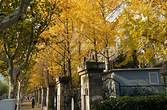 萧山紫荆园老年公寓有一条杏林大道,数十棵银杏树这时大放光彩,阳光一照金光闪烁,能把住在这里一千多位老人的心都暖得开花!