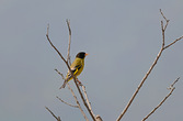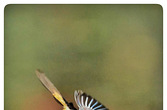 头黑色,上体橄榄灰褐色,腰和尾上覆羽较淡和灰,尾黑褐色,基部金黄色具黄色翅斑