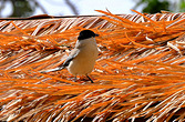 头和后颈亮黑色,背上灰色;翅膀和长长的尾巴呈天蓝色,下体灰白色