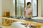 一起喝杯茶吧 摄影:洪小漩 出镜:菲比 展览:诗的午休——方溢炀个展 展期:2023年7月19日—2023年8月6日 场地:茶本誌虎跑馆(虎跑路四眼井61号) 跟着“杭州有意思”的脚步,知道虎跑路上的茶本誌有个展览,名字很有意思,叫做“诗的午休”。 于是,在周六的下午,在景区拥堵的车流中,缓慢行进至此。 我点了两杯茶饮,并在征得工作人员的同意后给菲比随意拍了一组照片。 工作人员笑容和煦,老板娘也十