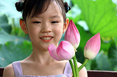 去荷塘游玩,孙女看着荷花漂亮吵着想要.爷爷跑了好多路不知从哪个小贩手里买来三颗,孙女喜出望外,高兴得差点流下眼泪!