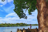 阳光撒在古街古堰古树之上