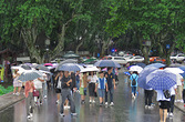 端午大雨纷纷下,荷花雨花加伞花,西湖山水还依旧,游客赏花乐哈哈!