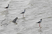 青山湖畔黒翅长脚鹬