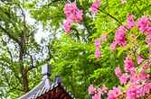 杭州吴山东岳庙门前就有两颗530年的古楸树正在盛放期,花冠是浅浅的粉紫色,花朵形如钟,花瓣内还带着紫红色的斑点。