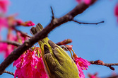山樱花上的绣眼鸟