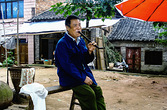 泸州城南旧事43-笑冒烟了多年前拍摄于泸州分水岭。那是一个赶场天,这剃头匠可能是跑摊的,在工闲时抽叶子烟,见我要拍,喜上心头,也是见过世面的人,在第二张图里就笑冒烟了。