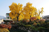 萧山紫荆园老年公寓大雪过后的第二天,园区景色惊艳,近四十幢楼宇间金黄 绯红与翠绿交织成画,树木与住所间五彩斑斓,初冬的色彩尤其曜眼,呈现一派温馨 祥和 美满的幸福景象。