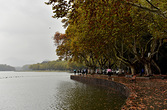 涌金池无患子树在阳光照射下一片金黄,熠熠生辉。2025.11.13
