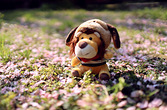 女儿有几件小挂件,我将它们放在小区的绿地上,让它们也沾点春光,沾点地气。