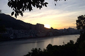 晚,天热,游客的热情更热,湖滨公园附近人群川流不息,集贤亭发出迷人的光芒。