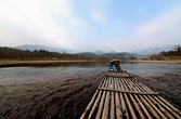 18春节行20-温州永嘉楠溪江狮子岩漂流3 今年是要发年,我们趁春节去碰运气,收获还算不错,谢谢大家的默许,现在就向大家发发照片也是发,希望我们共同发,但愿都发得好。祝18年要发! 既然是游山玩水,我们上了竹筏,漂流啦!小小竹排江中游,一位船工操作,一家人275元,顺流逆流共40分钟左右,娱乐嘛,当然比交通贵。 上水搁浅是竹筏漂游常遇到的问题,问题的解决就是船工下水去拉船竹筏搁浅