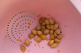 当我们把鲜银杏果从树上摘下后,一般泡水一周时间,不能触及到皮肤,戴上手套剥皮留核,那就是银杏果了!然后再把它们放在风处晾干,记得不能暴晒。 晾干后的银杏果可生吃也可熟吃,都是养生之道,切忌贪食过多会中毒!吃的时候还需要把内芯的芽儿拔出来,一天最多吃十来个就行了!新鲜的银杏果(银杏果)去壳比较简单,用小锤子轻敲破外壳,这样就容易剥开。记住不要太用力,那样会把里面的果子都敲破。剥开后的银杏外面还有一层