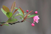 春光明媚,两位白发老人在小区旁专注地赏春花。2108.03摄于上塘河畔。