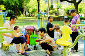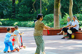 小区和公园里,随处可见笑容可掬的老人带着活泼可爱的孩子,真可谓含饴弄孙乐融融。2018.07摄于朝晖小区、墅园。