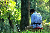 三伏天的大树下,几位大妈摇着扇子聊得欢。2018.07摄于杭州墅园。