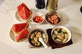 露浥黄藕白, 伏波浮绿水. 纤腰一把细柳翠, 翠影倚门欲迎谁. 时有访者, 乌云飞. 谛闲小屋里, 幽微清音回. 花雨泻红滔滔泪, 一窗凄楚残英坠. 见此这般, 酒无味.