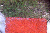求大师们帮看下乡下拆房的拆下的梁插,准备当差点被当柴火烧掉的因木硬劈不动,锯开后看到颜色鲜丽异常就留下的,褪色,半沉水,刚开时鲜橘红,后来发紫,是啥木头呀