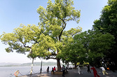 湖滨晨练人