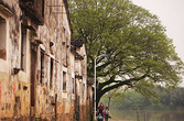 久雨突晴,阳光撒满小径,到处绿色葱葱。