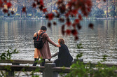 周末西湖边,虽然有太阳,还是有点冷来的