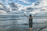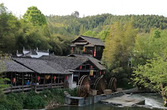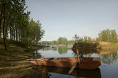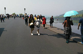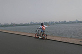 晴空万里,云淡风轻,野花盛开,群山葱翠,水映青山,山绕碧水,春意昂然,湖山如画。