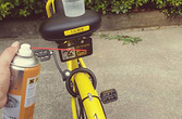我有一个法宝,专治那些不文明人随着共享单车各地升温,也暴露了你我身边一群素质之差的暴露了出来,给共享单车加私锁,恶意破坏单车,用黑漆把有二维码和租车码的车故意涂黑,以防别人租走,这样单车就为他所用,别人想租租不了,对于用黑漆涂黑的小黄车,我今天试了下用我洗摩托车的喷雾喷了一下,租车码立马出来了。顺手把车骑到路上动了起来,不能让一些占小便宜逍遥。