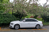 2017年4月17日,早上有有雨,在单位大楼后面停好自己的车走出的时候,发现有一辆白色的奥迪停在樱花树下,湿漉漉地面上花瓣零落,白色的车子一尘不染,只有玻璃上挂着几片花瓣,树上还有雨滴偶尔滴下,画面太美。几乎都走过去了,还是忍不住又停下来回头用小米手机拍了下来。杭州不愧会最清洁最华丽的城市,随便一个角落都能发现美丽的细节,又是那么和谐自然。