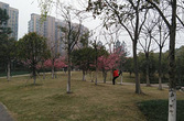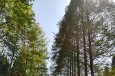 树木遮天蔽日,路的尽头是以前南京军区浙江生产建设兵团陈列室。