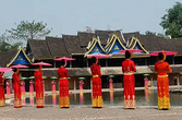 傣家姑娘被称为水傣,意思水一样温柔的姑娘,走过来,款款而行,尤其孔雀舞,灵动,轻柔。