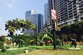 市民中心门口钱江路的马路中间的景观,真是漂亮