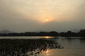 隐居幽谷,静观枫飘梅落,阳笼芦苇