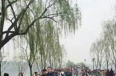 晒春游+ 杭州西湖边的游客.