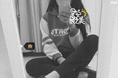 头发油又不能洗索性绑起来,露出大脑门和圆圆脸。[/疑问]今天穿熊猫脸图像的带帽黑色长卫衣,加黑色紧身打底裤,脚上白色板鞋。[/遛白菜][/遛白菜][/遛白菜]