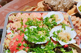奥尔良烤翅,蒜蓉油麦菜,椒盐虾菇,白灼基围虾,水煮嫩花生,清蒸大闸蟹!