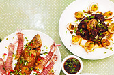 奥尔良烤翅,蒜蓉油麦菜,椒盐虾菇,白灼基