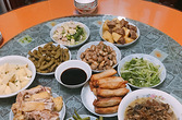 晚餐:炖土鸡,红烧带鱼,清炒木耳菜