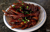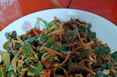 香辣苕虾,西芹百合,昨天没吃完的白斩鸡,今天把鸡肉撕成条状,拌上蒜蓉,生抽,芝麻油,香菜,那就是口水鸡了!