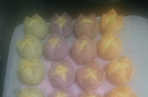 油皮:中筋面粉:150g 猪油:50g、水:60g,白砂糖:20g 油酥:低筋面粉:120g 猪油:50g(加抹茶粉或者紫薯粉就是彩色的了) 蛋黄:12个 红豆沙:180g 鸡蛋黄、)黑芝麻少许 1、把油皮所有材料混合,揉成可以拉出膜的状态,醒半小时 2、油酥材料混合,揉搓均匀,醒半小时 3、分离鸭蛋,留下蛋黄,表面喷白酒,180度烤箱,烤5分钟左右 4、豆沙搓成15g小圆子,蛋黄冷却