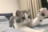 日推网友@Aoi_SOLA_Hikari 称: 我家猫每天都是这个鬼样子,你们帮我看看,它到底是在干嘛啊! 看似捉虫?实则不是。 窗边观景?实则不是。 窝里休息?实则不是。 这大手膀子都快怼到脸上了,啥意思你还不清楚啊?! 猫:亲我!然后say marry me!立刻,马上! 害,小猫咪在线求婚也不过如此吧? 10克拉大钻戒,安排! 说来奇怪,好多猫猫都很喜欢装独臂大侠。 明明沉迷梦乡,却又伸出圆