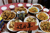 素菜荤菜选自己喜欢的。调料不能少的火锅底料和红油。先来些蒜末姜末爆一下,放下火锅底料加水,这味道真是爽,哈秋不能停。[ej=1F60F]接着放下素菜捞出来在烫荤菜。调个红油泼上去完美。色泽和味道很不错