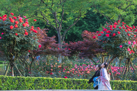 郭庄耧斗菜花展刚落下帷幕,杭州花圃的月季园芬芳再续。以展示地栽月季为主,100余个月季品种,57000余株月季。园内植以树状月季为主、特色鲜明,层次分明。树状月季主要位于莳花广场小道两侧,形成满树月季夹道的效果。色彩艳丽,视觉冲击力强。欣赏月季,就要满园满园的花好月圆,能唤醒初夏视觉。接下去杭城将迎来八仙花、彼岸花、荷花等盛开,整个杭城沉浸在花的世界里,美不胜收!