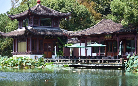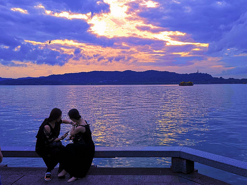 天气好热,游人也多,在西泠桥边上支起脚架,装上滤镜,拍了这张照片。