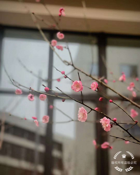 去年刚刚搬厂,种了几棵梅花,开的不是很茂密,