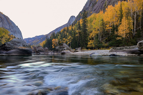 可可托海不是海 ,而是一个大峡谷,位于新疆阿勒泰地区的富蕴县。秋天的可可托海,宛如一幅绚丽多彩的画卷,金黄的白桦林与苍翠的松柏交相辉映,似大自然用神奇的画笔勾勒出的绝美杰作。额尔齐斯河如一条蓝色丝带在峡谷中蜿蜒流淌,河水清澈见底,映照着两岸斑斓的秋色。漫步其中,仿佛置身于梦幻般的童话世界,每一个角落都散发着浓浓的秋意。