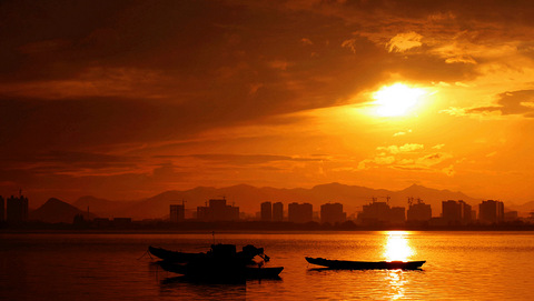 滨 江 晚 霞